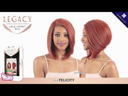 - Legacy Human Hair Blend Lace Front Wig - Felicity is a a-line style wig that's extremely easy to style and wear! Legacy is made of 100% heat-resistant fibers and human hair blend, allowing for curling and straightening up to 400 degrees Fahrenheit with a curling iron.